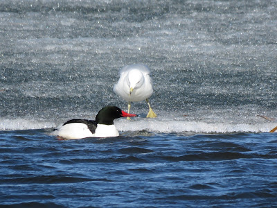 | Ring-billed Gull watching the Common Merganser Porcupine Lake (7 May 2018) |